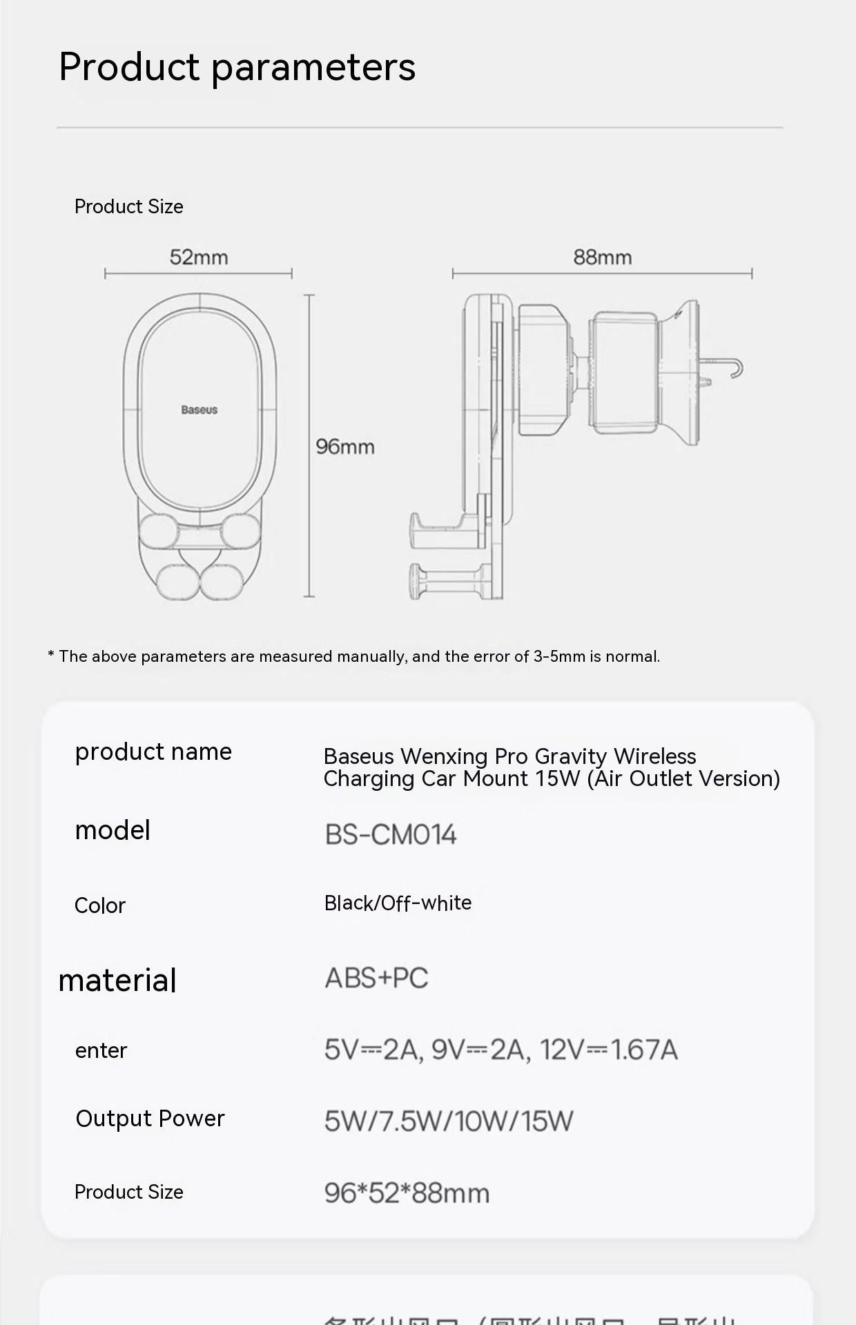Car Phone Holder Wireless Charger Fixed Anti-shake